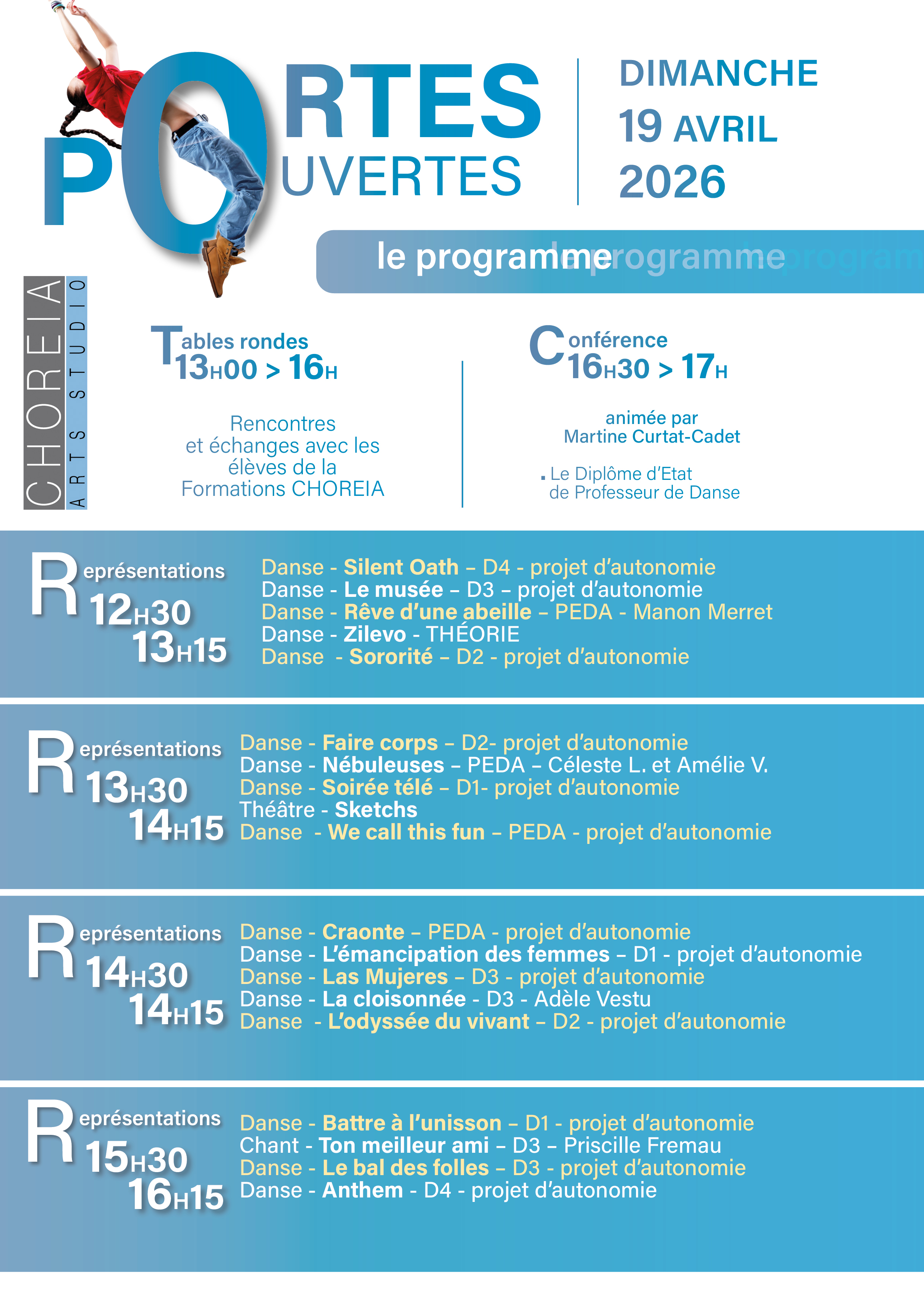 Venez découvrir l’univers unique de l’école Choréia lors de nos journées portes ouvertes les dimanche 22 février et 19 avril 2026 de 12h à 18h.